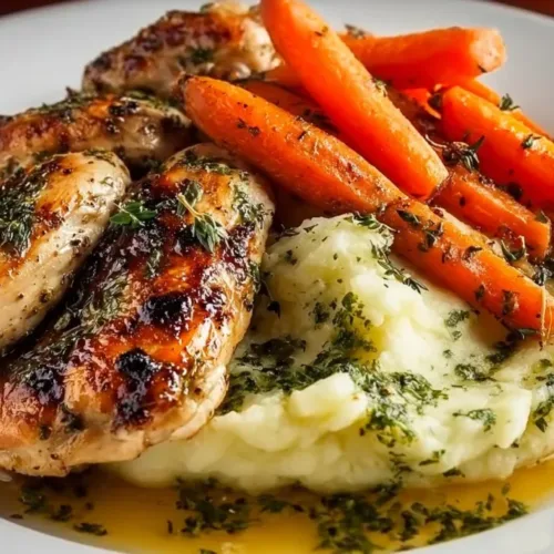 This Garlic Herb Chicken with Mashed Potatoes and Glazed Carrots is a classic recipe that beautifully marries simplicity with flavor. It’s a nourishing dish that not only satisfies hunger but also nurtures the soul with its comforting taste and inviting aromas. The ease of preparation combined with the variety of flavors makes it a worthy addition to any home cook’s repertoire.