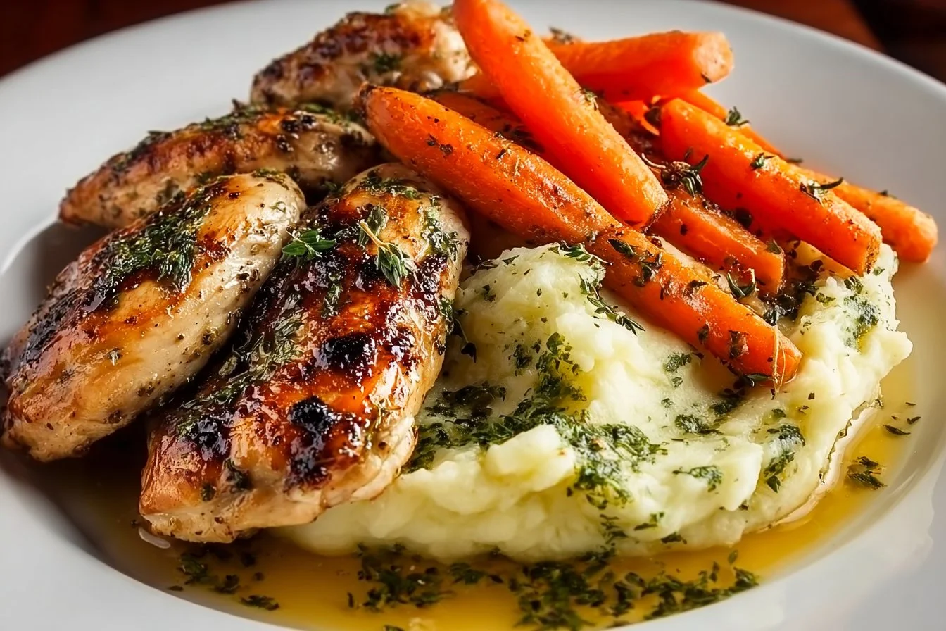 Garlic Herb Chicken with Mashed Potatoes and Glazed Carrots